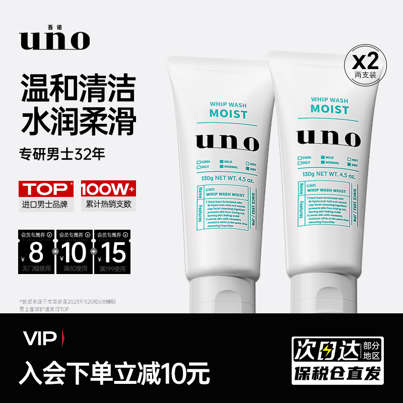 UNO吾諾洗面奶男士專用保濕洗面乳臉部清潔溫和補水潔面兩支裝