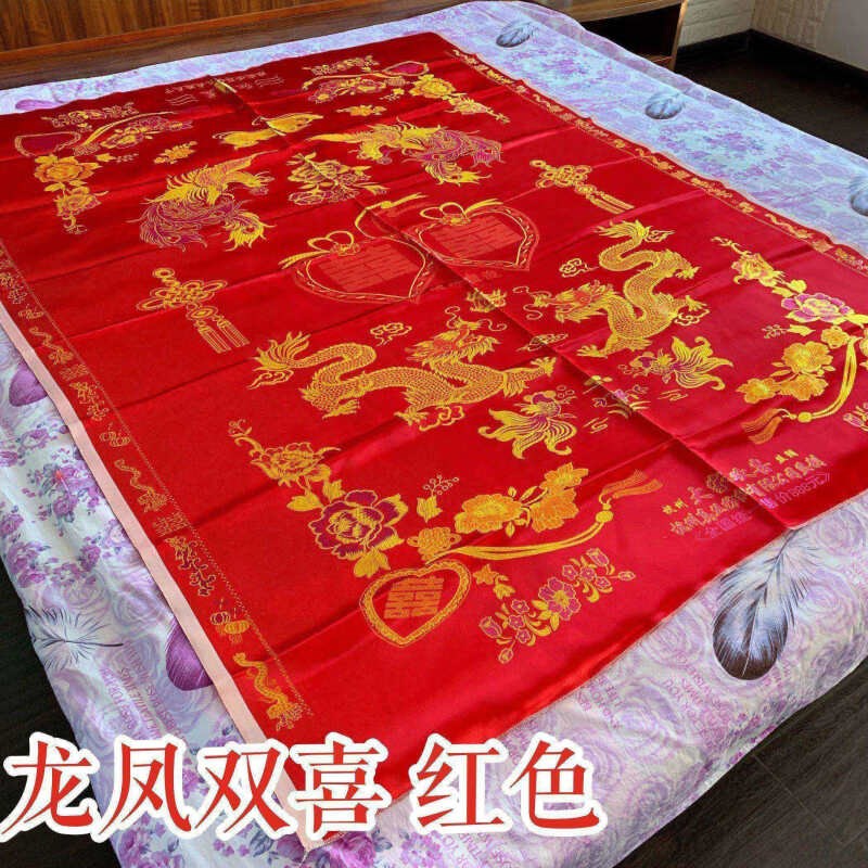 被面子掛紅被面軟緞m婚慶綢緞子七彩織老式被面子婚車龍喜紅色15x