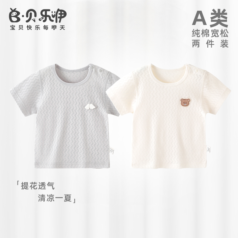 貝樂咿嬰兒短袖T恤純棉夏季薄款網眼無骨兒童半袖衫全棉寶寶上衣