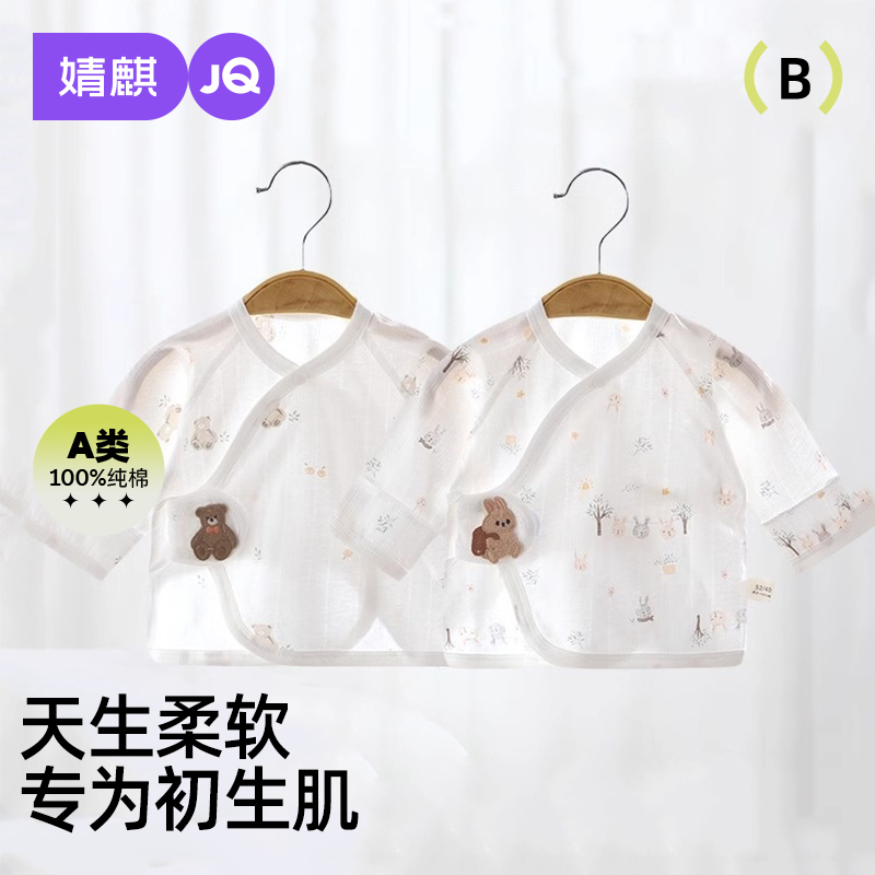 婧麒嬰兒半背衣夏季薄款初生寶寶新生兒衣服A類春秋純棉52碼上衣