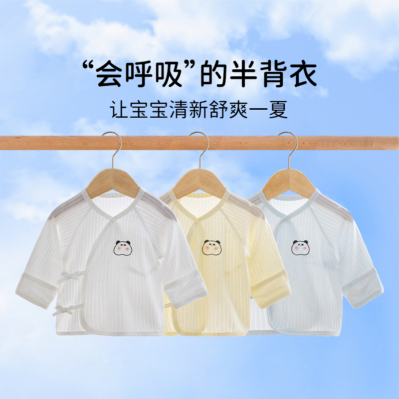 婧麒新生嬰兒兒衣服涼感無骨莫代爾半背衣夏季透氣薄款寶寶和尚服