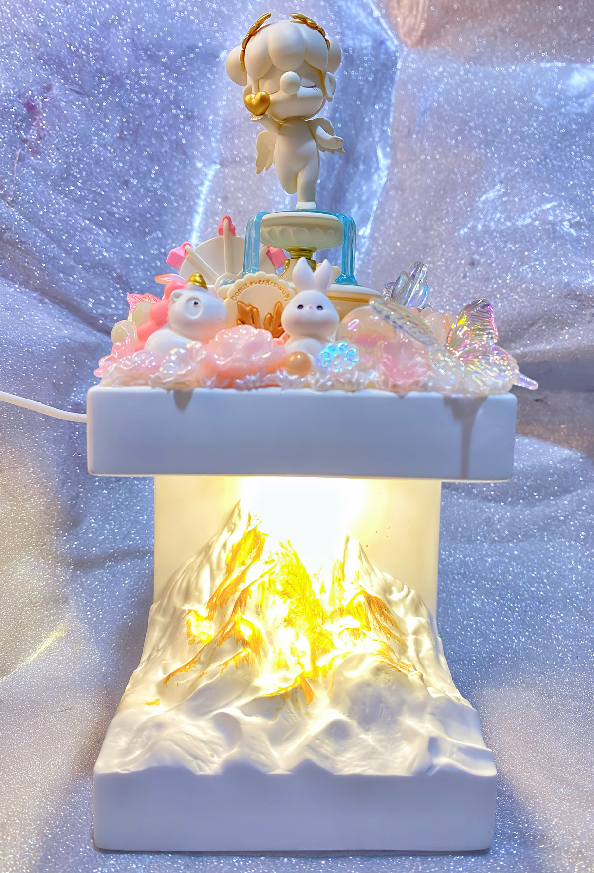 泡泡瑪特小夜燈若來香薰石秘密花園噴泉桌面擺臺潮玩裝飾三色臺燈