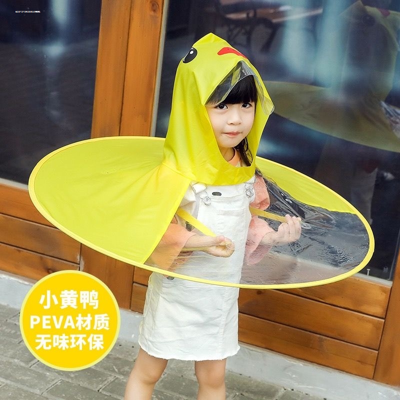 兒童網紅神器飛碟雨衣帽女童小黃鴨斗篷式雨披寶寶雨具男孩幼兒園