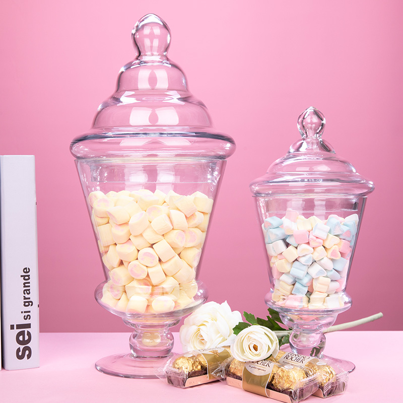包郵歐式高腳玻璃糖果罐廚房儲物罐帶蓋加厚透明器皿甜品臺軟裝