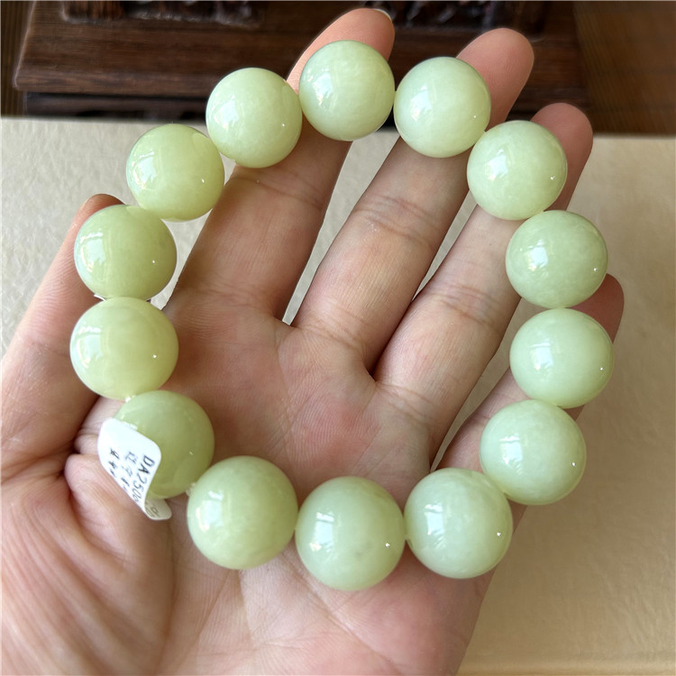 天然岫玉河磨玉手串細膩老型珠男女款把玩玉串高品質收藏禮物高貨