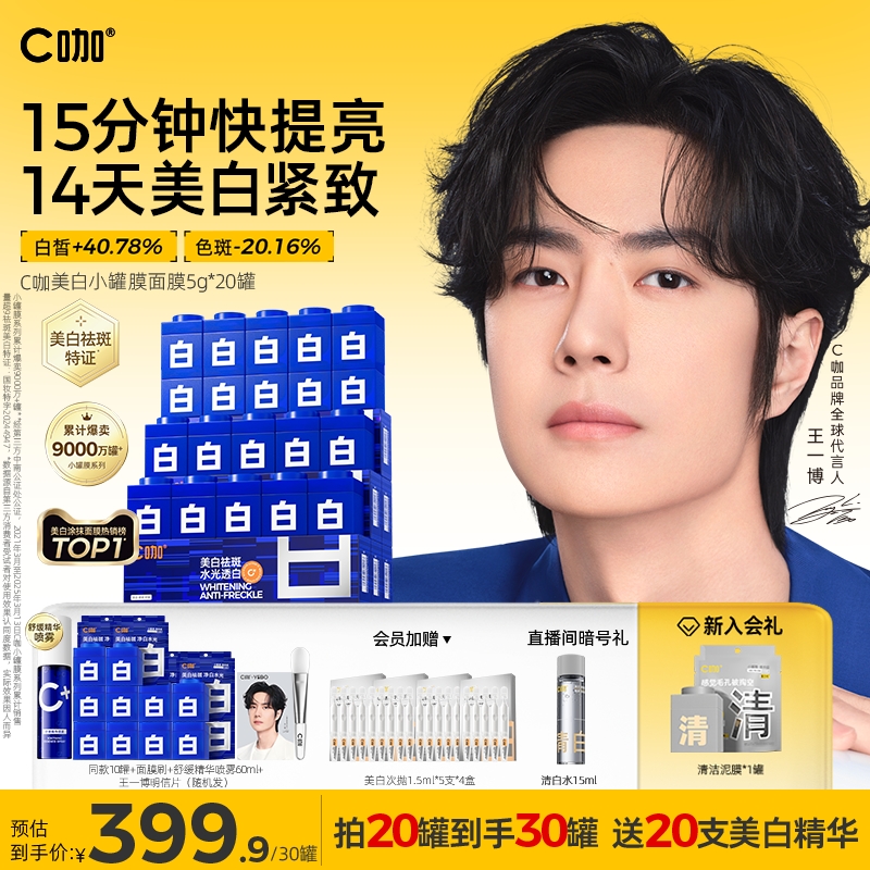 拍3件更劃算】王一博同款C咖小罐膜補水面膜保濕精華舒緩免洗睡眠