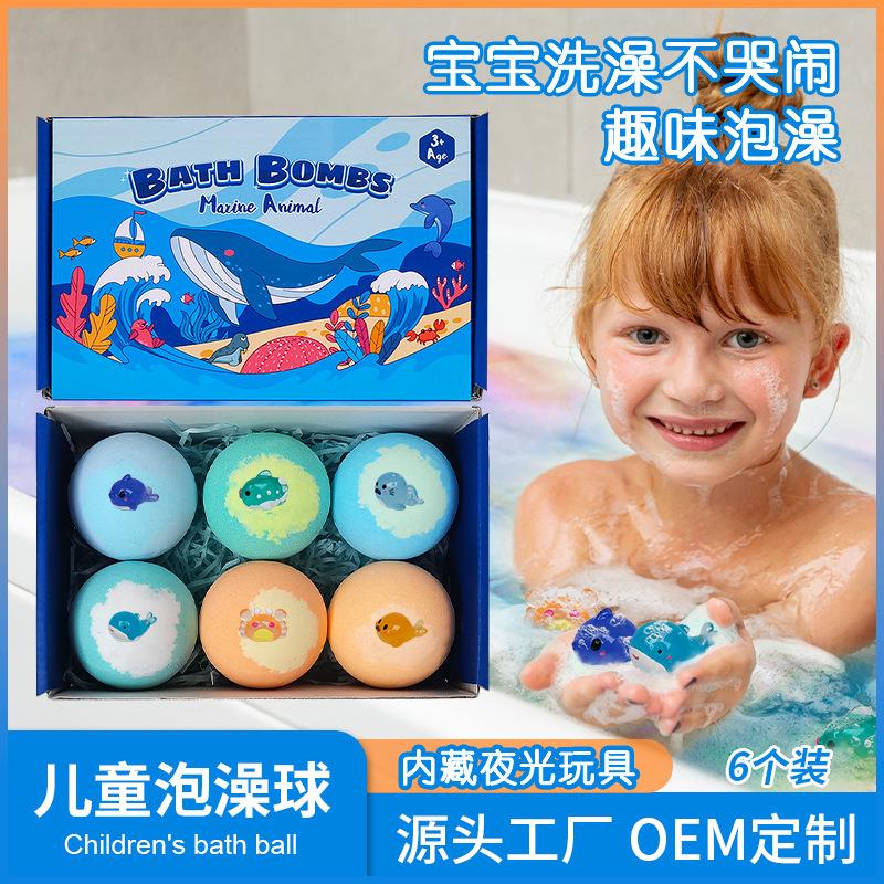 跨境熱款兒童夜光玩具泡澡球套裝海洋發光玩具浴鹽球氣泡彈定制