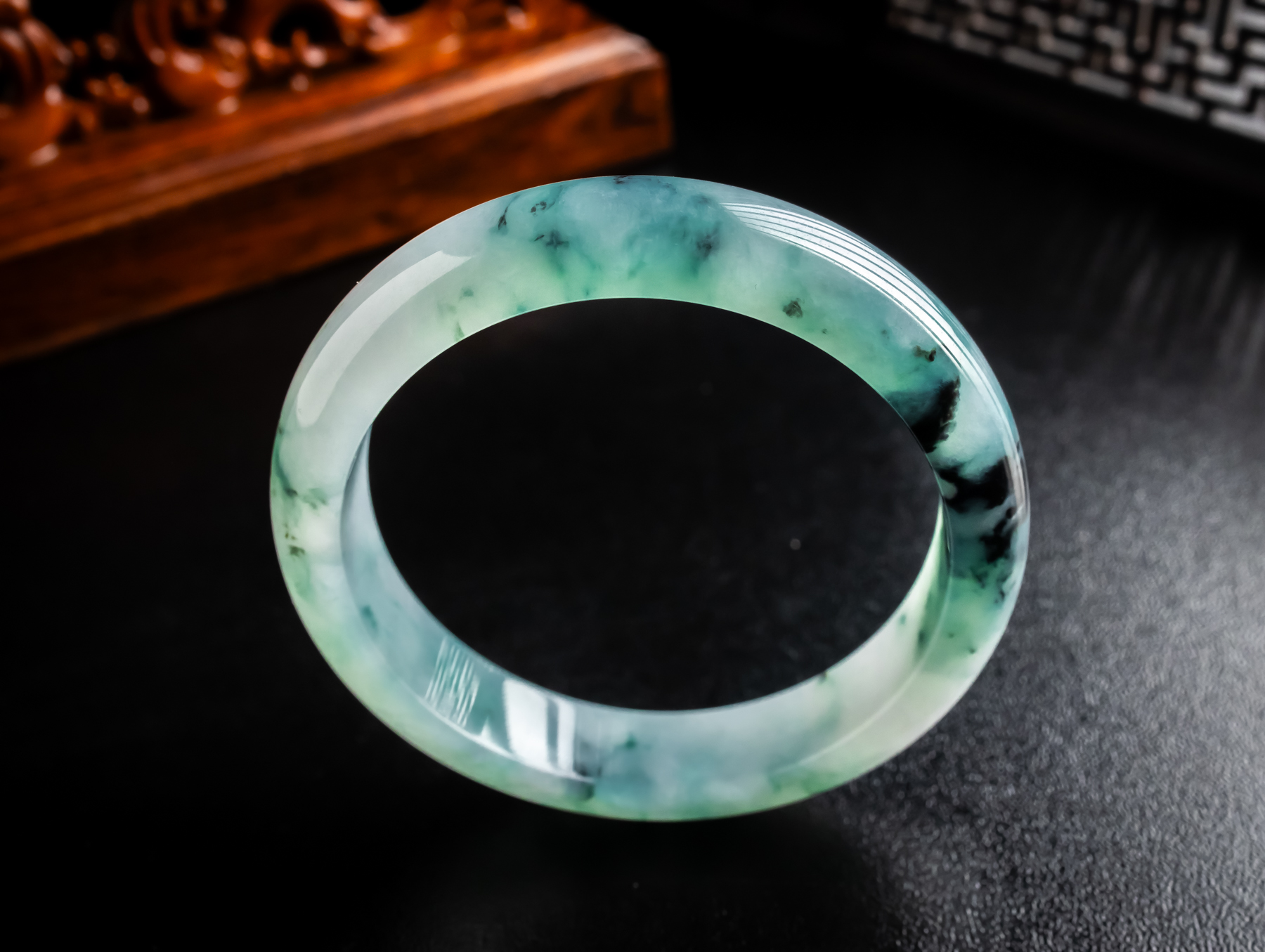 高冰透獨龍玉飄花手鐲危地馬拉翡翠色女款玉石手鐲子冰種玉鐲女款