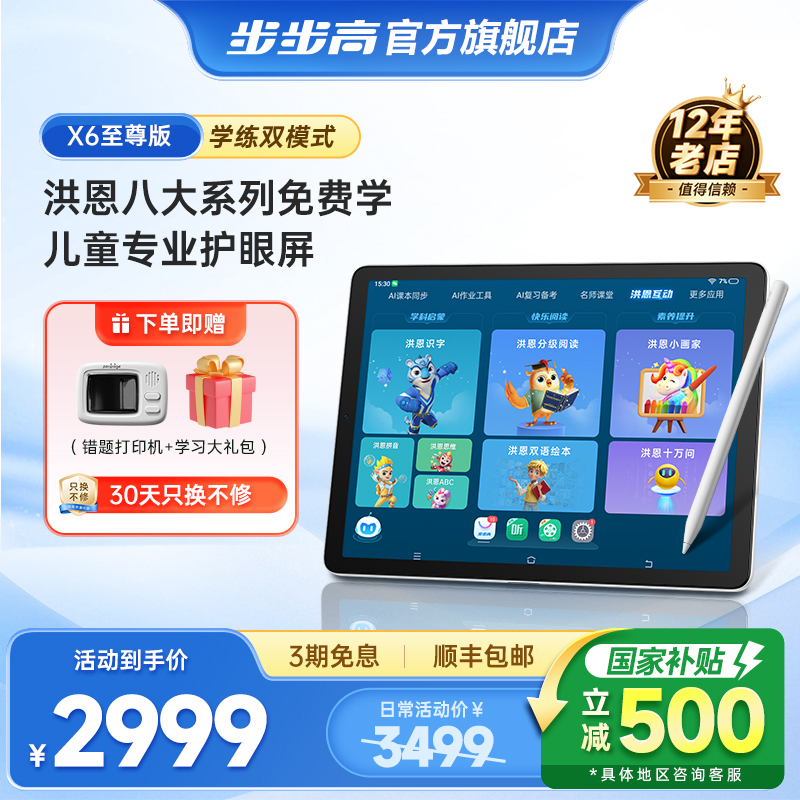 【官方旗艦店】步步高學習機X6至尊版洪恩免費學練啟蒙早教兒童英語ai批改小學初中高中通用護眼平板2025新款