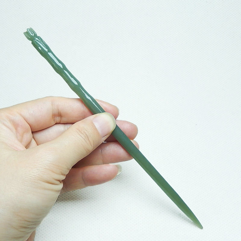 青簪竹節蘭花玉發簪玉簪子和田玉青玉漢服發髻頭飾挽發發釵玉發飾