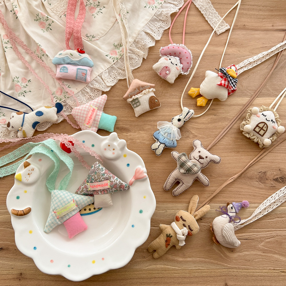 2025新款韓國兒童掛脖項鏈女童可愛卡通可調布藝項鏈女孩配飾手工