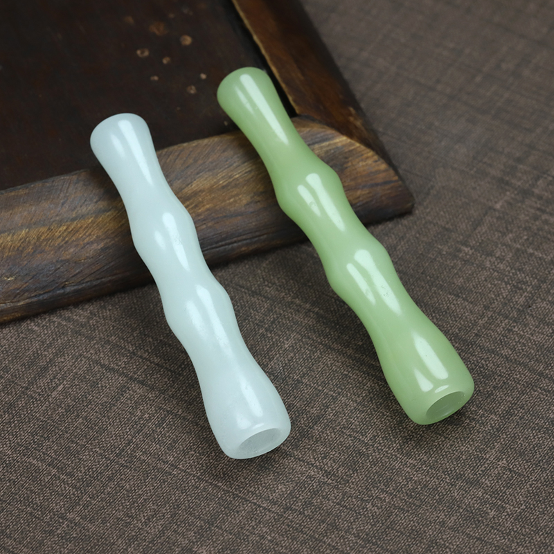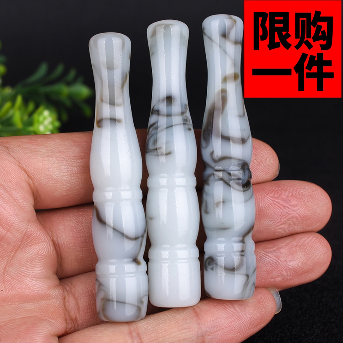 新疆和田玉青白玉竹節煙嘴過濾器玉石節節高煙嘴煙哨煙槍煙桿男士