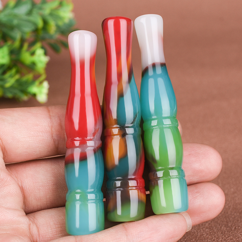 天然和田玉煙嘴男士新疆彩玉煙斗節節高升煙嘴煙具吸煙過濾器把件