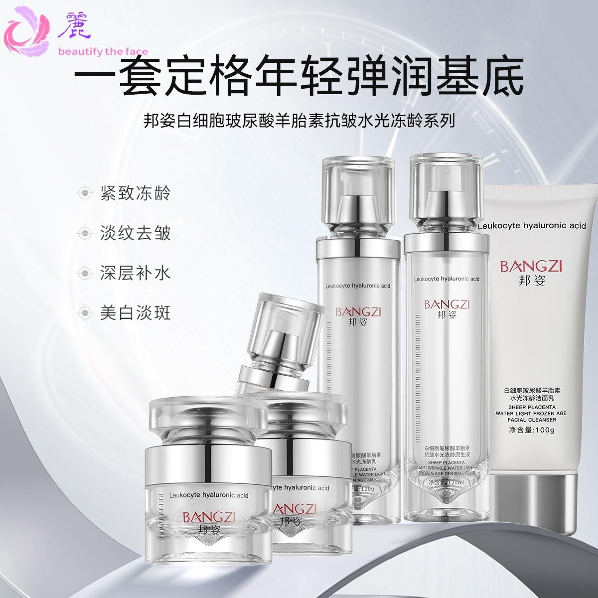 邦姿白細胞玻尿酸羊胎素水光套裝洗面奶凍齡乳精華液眼霜面霜套裝