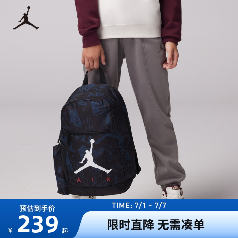 JORDAN兒童雙肩包學生耐磨書包電腦包大容量背包黑色JD2413001AD
