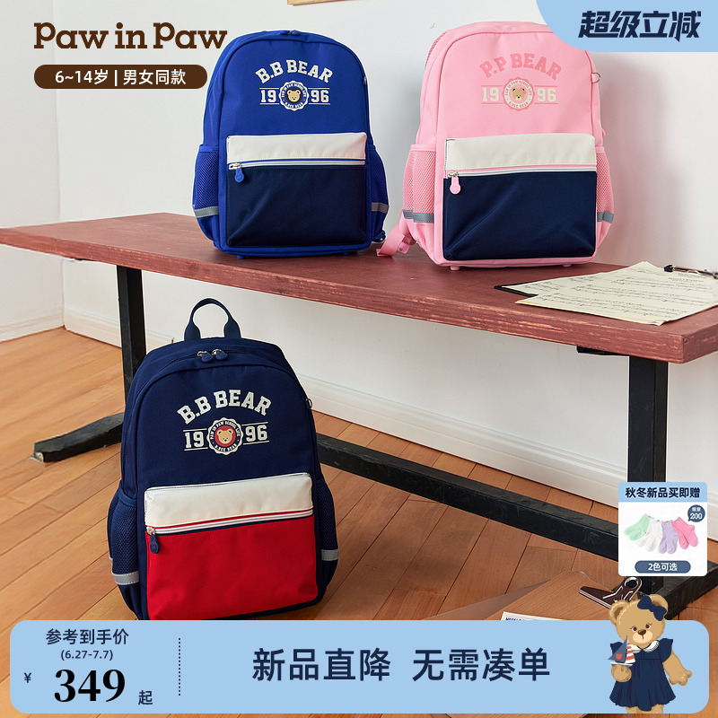 PawinPaw卡通小熊童裝25年秋冬新款男女童減負防潑水雙肩包書包