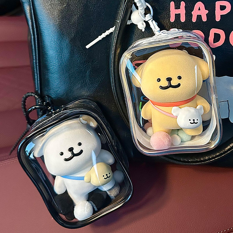10cm15cm線條小狗收納包pvc加厚高透明可愛遛娃防塵包大容量A極簡