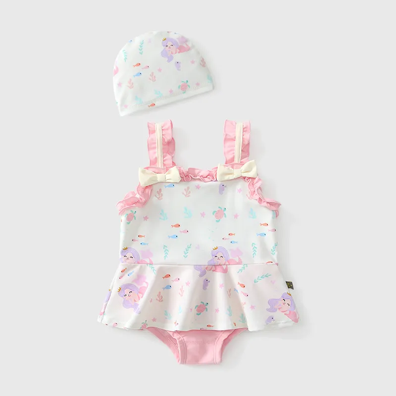 女童泳衣2025新款兒童連體裙式游泳衣 小美人魚女寶寶度假泳衣
