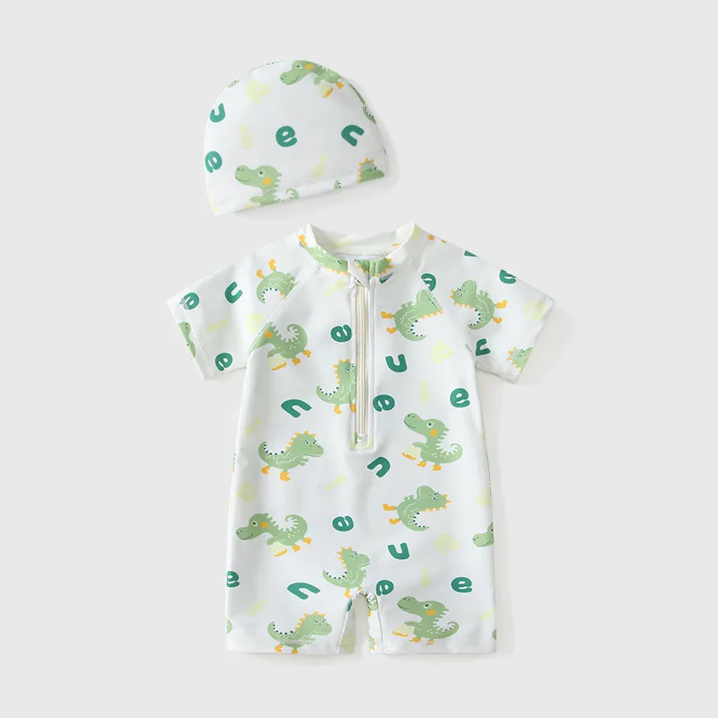 2025夏季新款歐美兒童小恐龍印花泳衣 嬰幼童沙灘溫泉卡通泳裝