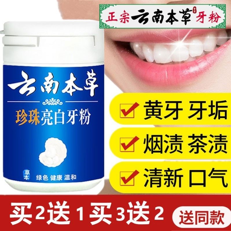 正品云南本草珍珠洗白牙粉美白亮白牙齒神器速效去黃黑潔牙漬結石