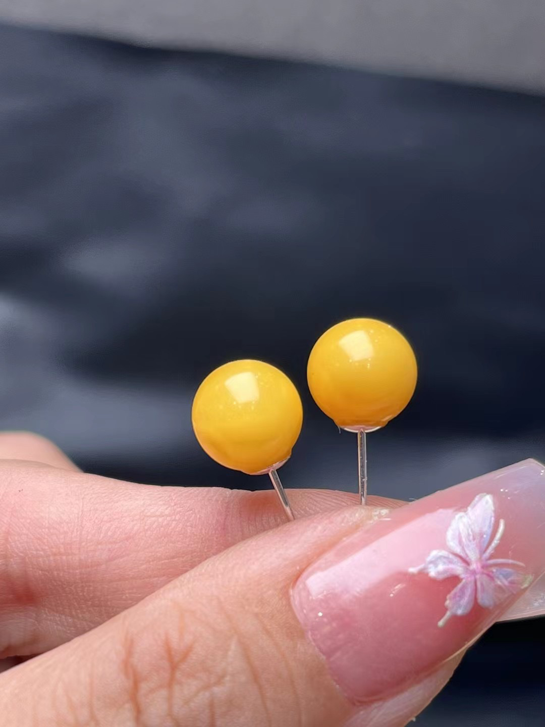 天然蜜蠟圓珠耳釘滿蜜雞油黃耳釘925銀針耳釘簡單大氣百搭新中式