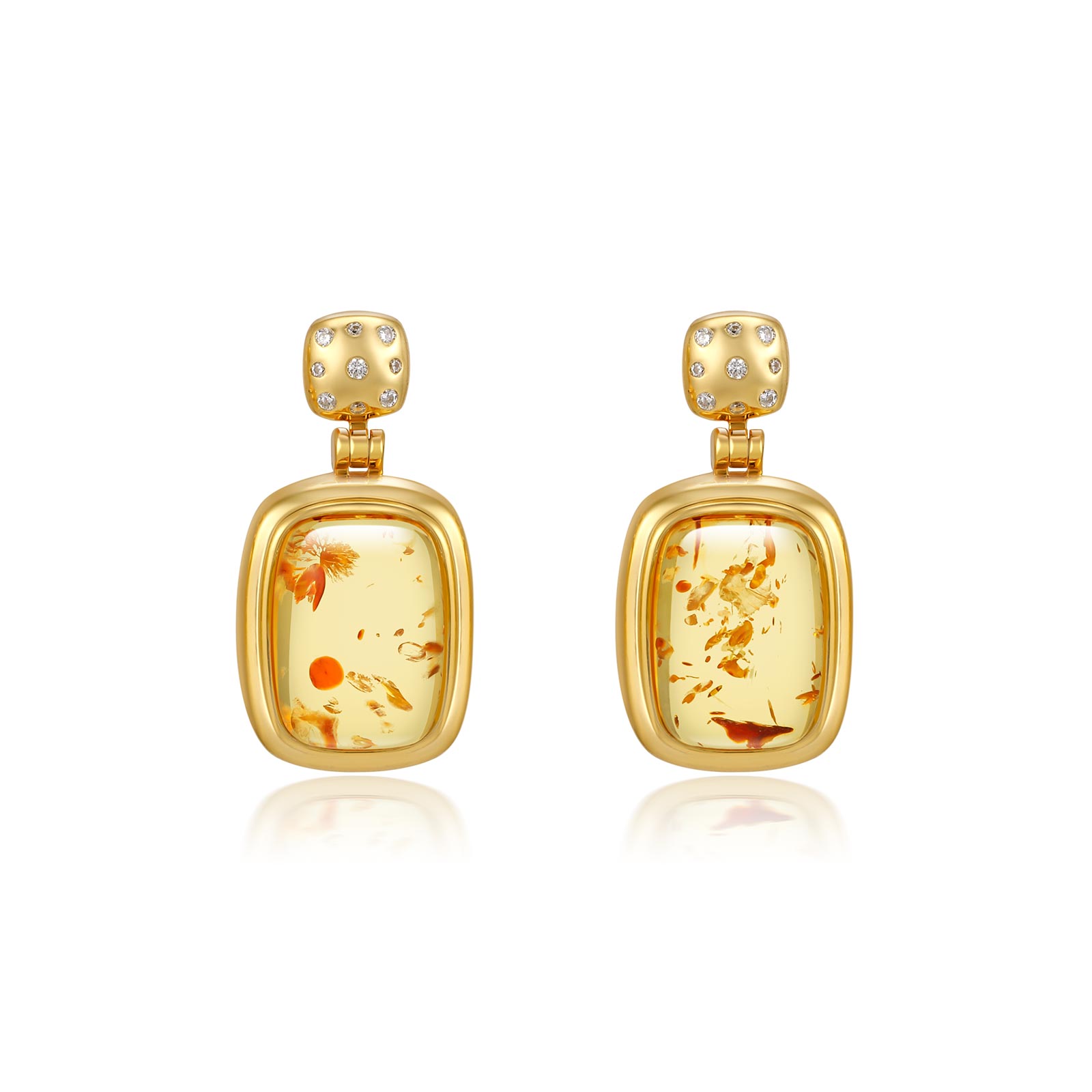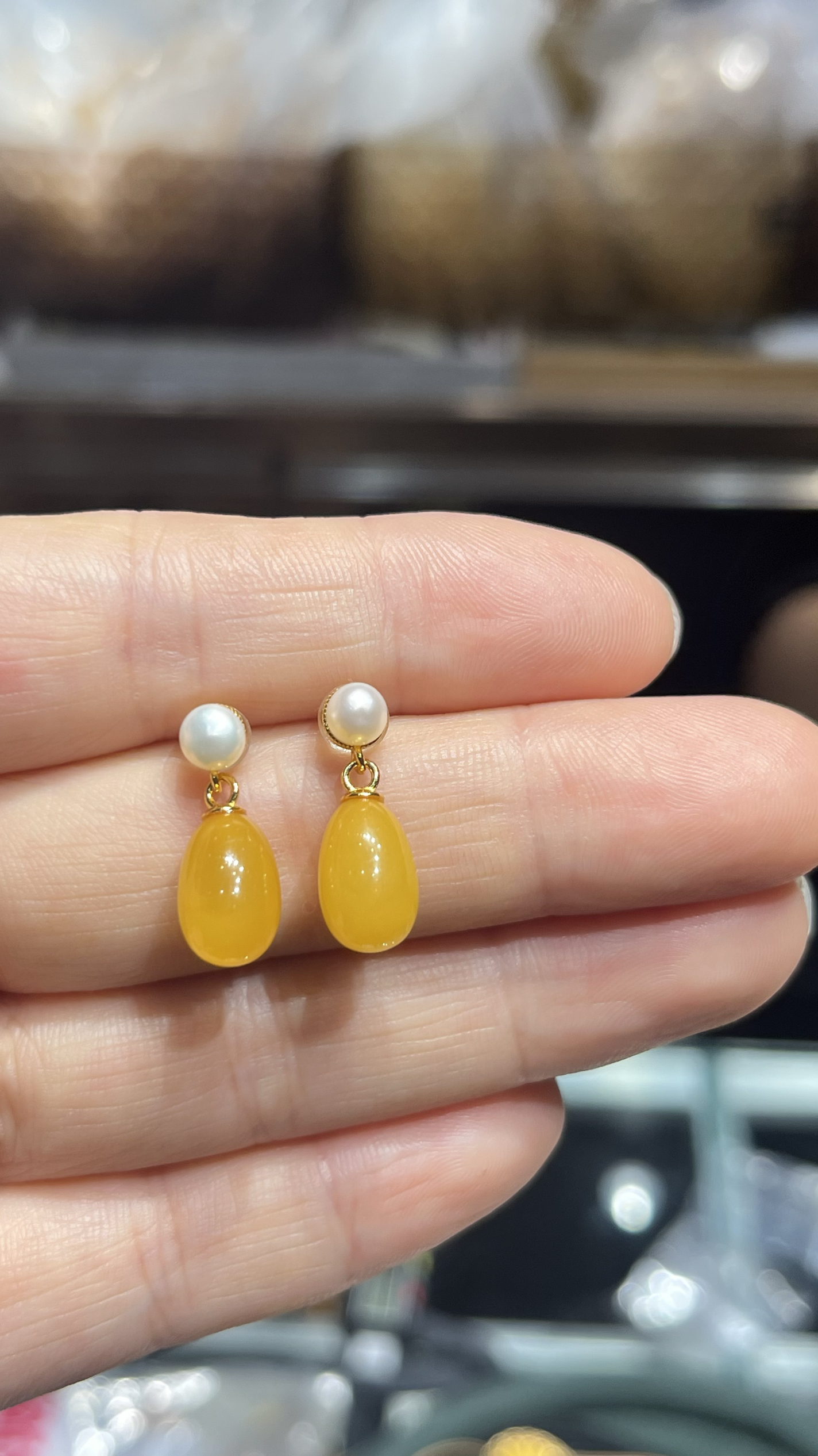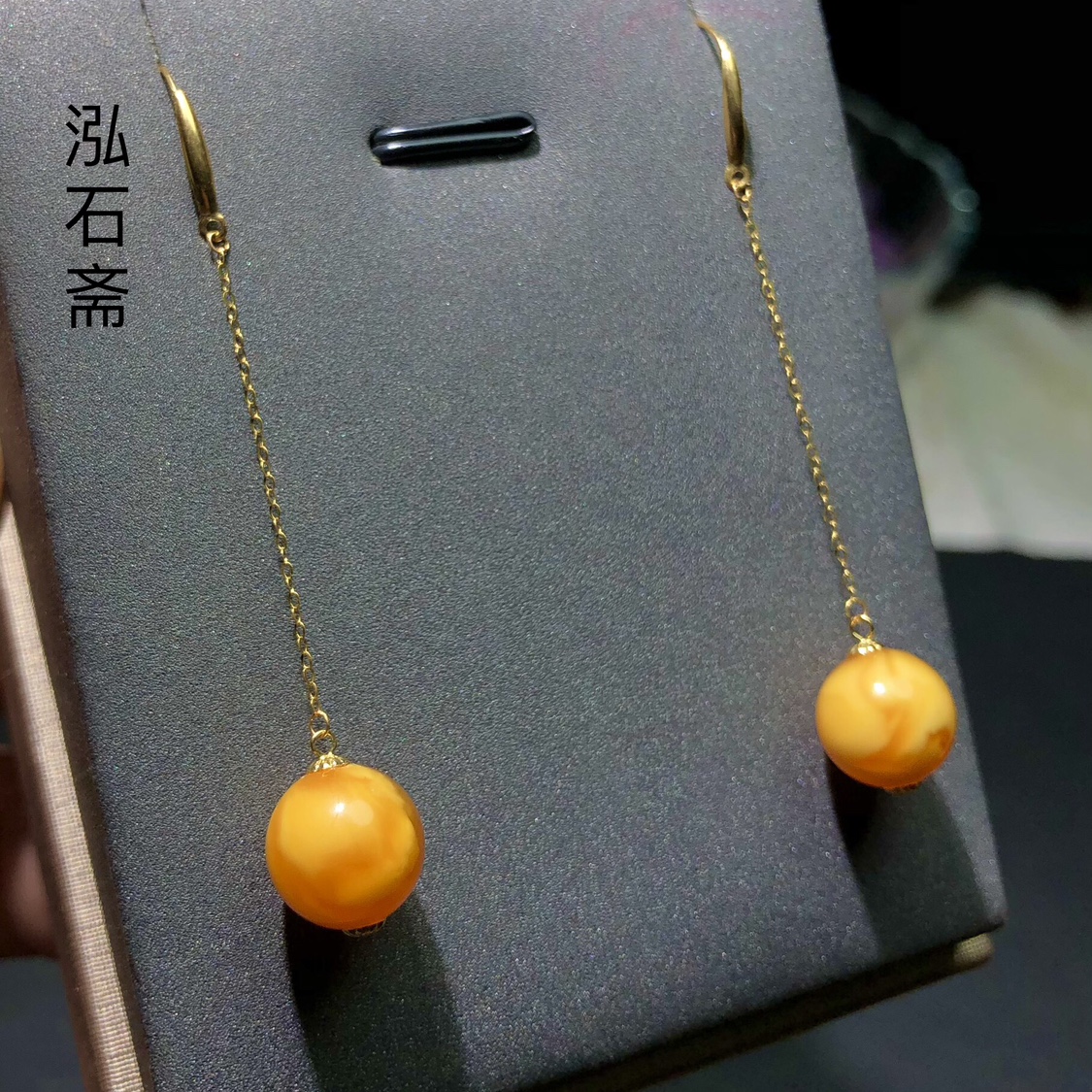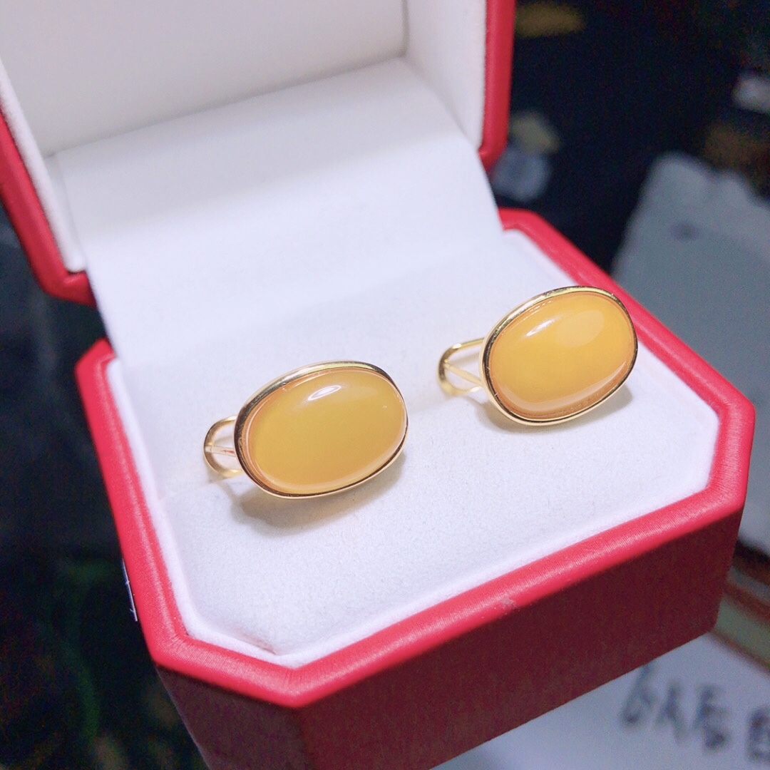 天光墟蜜蠟耳飾18K金鑲嵌雞油黃蜜蠟耳墜琥珀耳環女