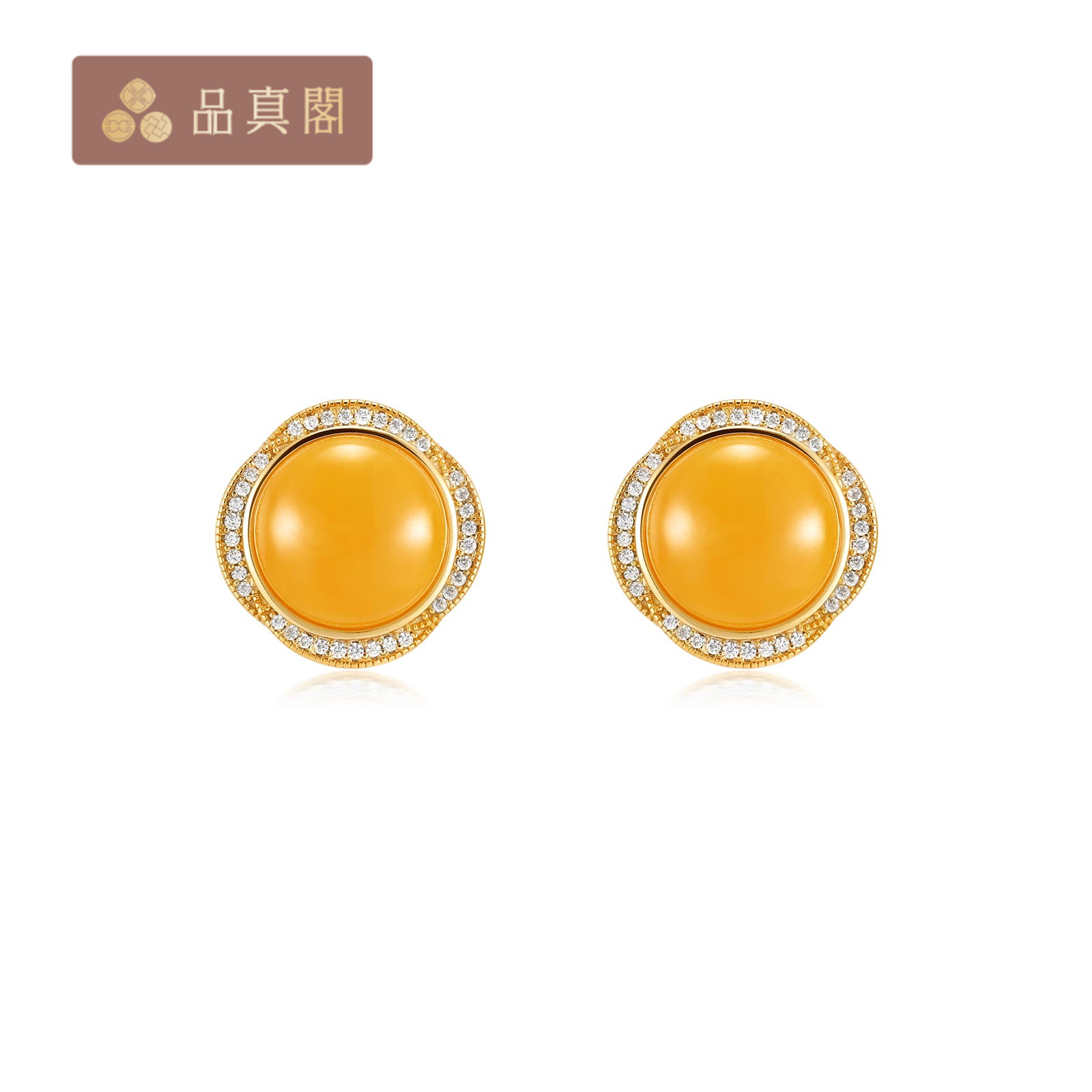 品真閣 S925銀琥珀蜜蠟老蠟蛋面耳飾天然蜜蠟生日禮物送親友