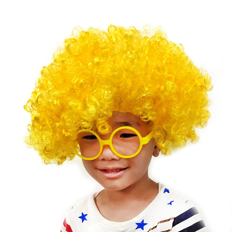 新品帶眼鏡框彩色爆炸頭假發套球迷發飾頭套兒童裝扮道具活動氣氛