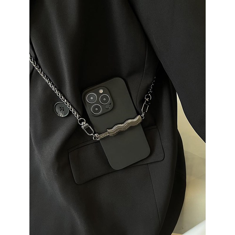 手機掛繩斜挎可背包金屬鏈條可調節手機背夾掛脖T波浪手機夾斜挎