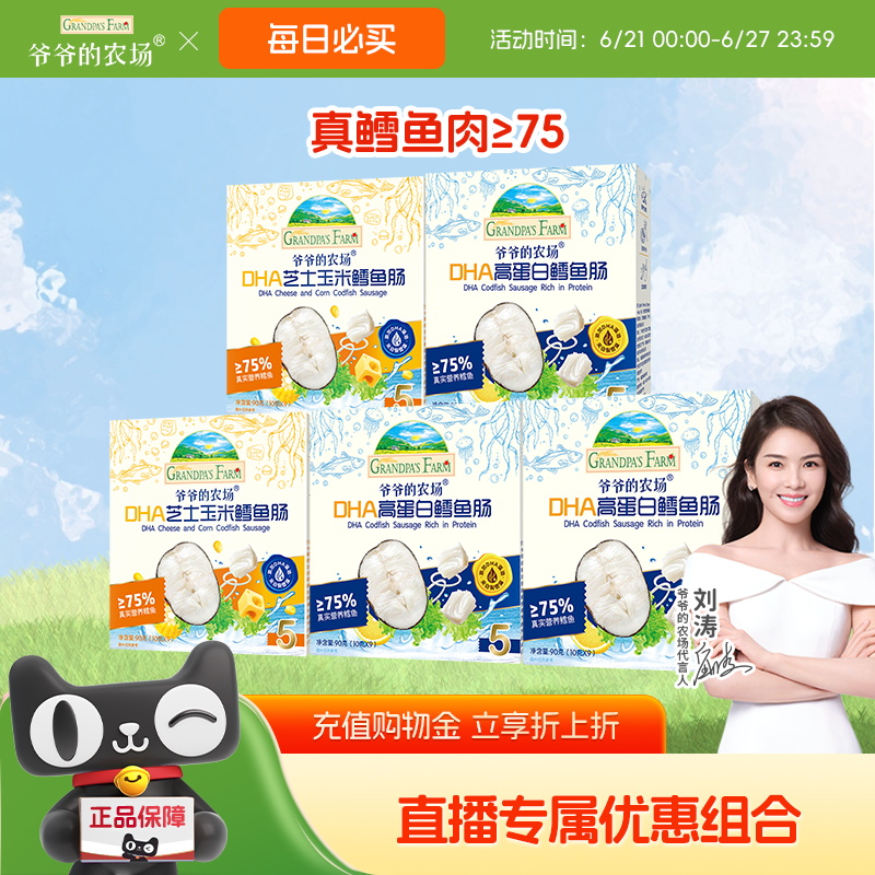 【直播推薦】爺爺的農場DHA高蛋白鱈魚腸兒童解饞營養零食5盒