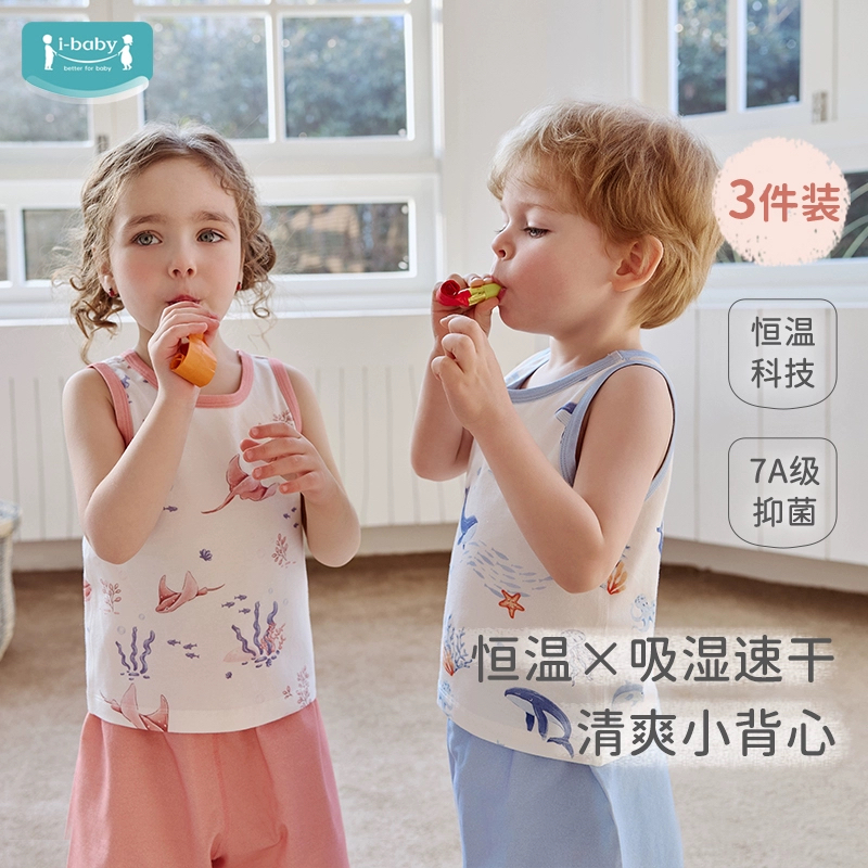 ibaby兒童背心3件裝男女童夏季內搭恒溫抑菌透氣