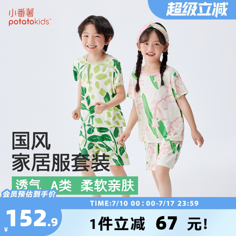 小番薯potatokids短袖兒童家居服套裝方領國風莫代爾男童女童睡衣