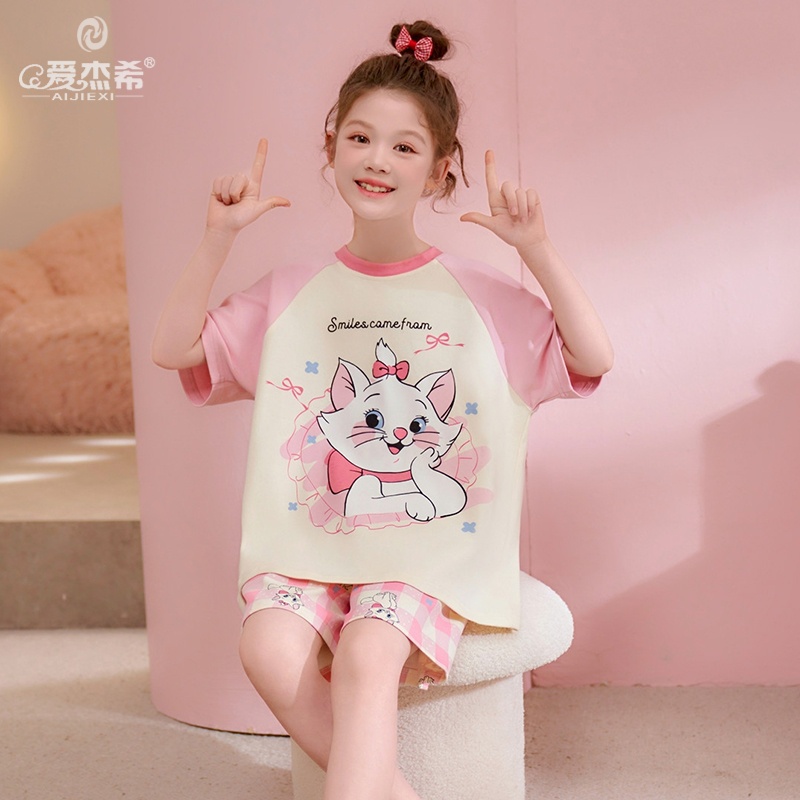 女童睡衣夏季純棉短袖短褲薄款套裝女孩大童寶寶兒童公主風家居服