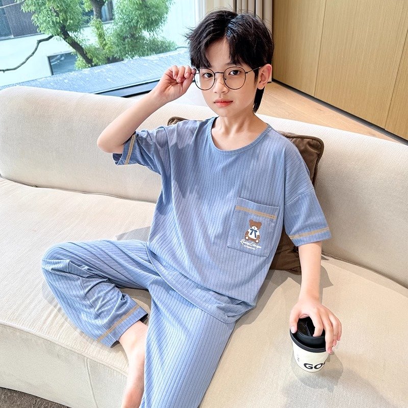 青少年睡衣男童兒童夏季短袖中大童卡通可愛家居服套裝短褲小男孩