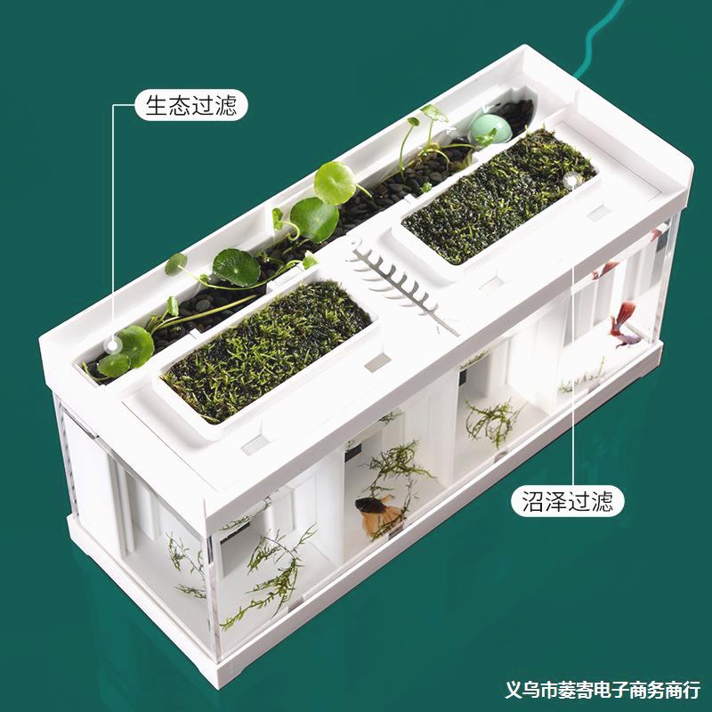 創意斗魚缸亞克力造景生態桌面燈隔離板過濾免換水加熱魚專用排缸