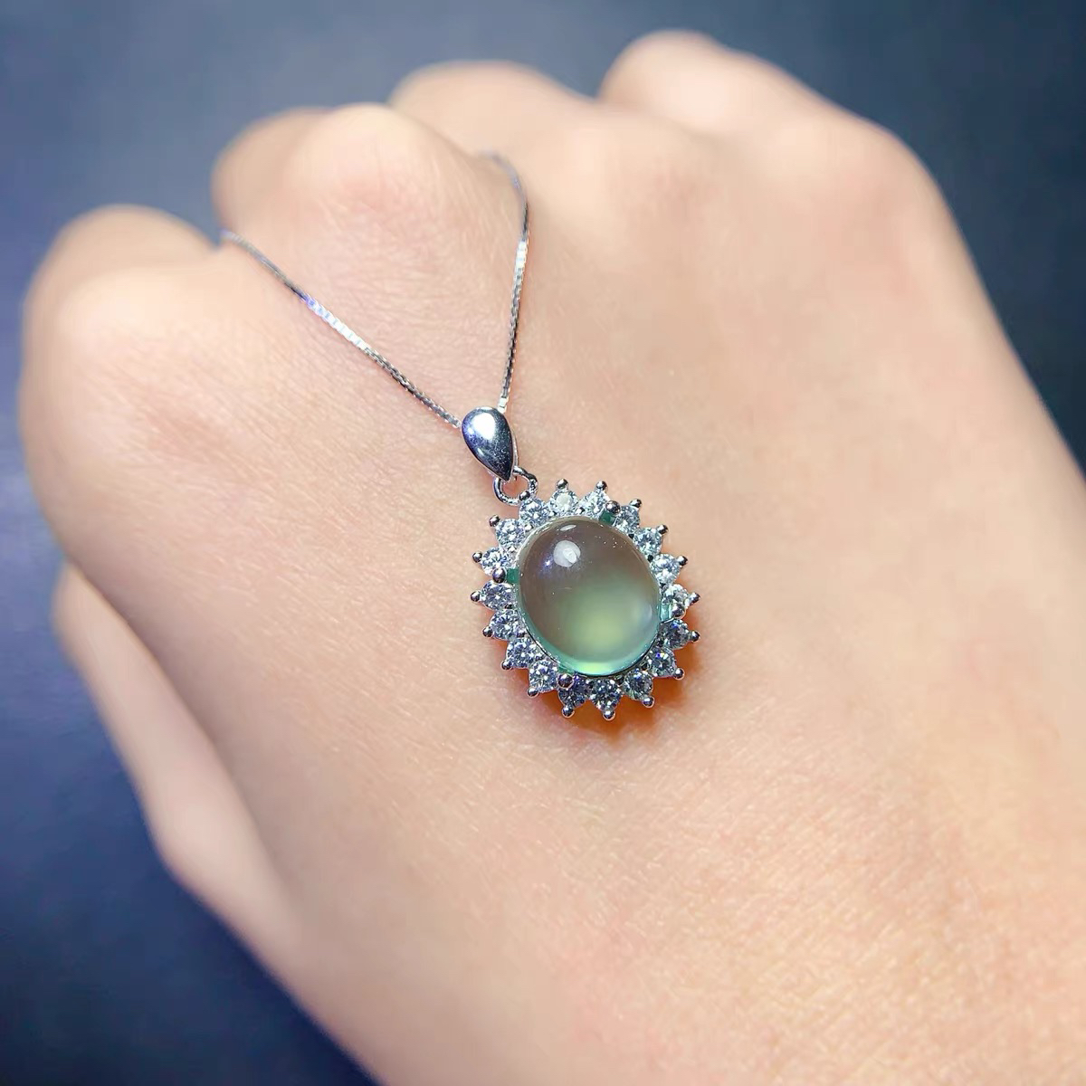 天然金葡萄石吊墜 冰種起熒光,晶體干凈,925銀主石9*11mm