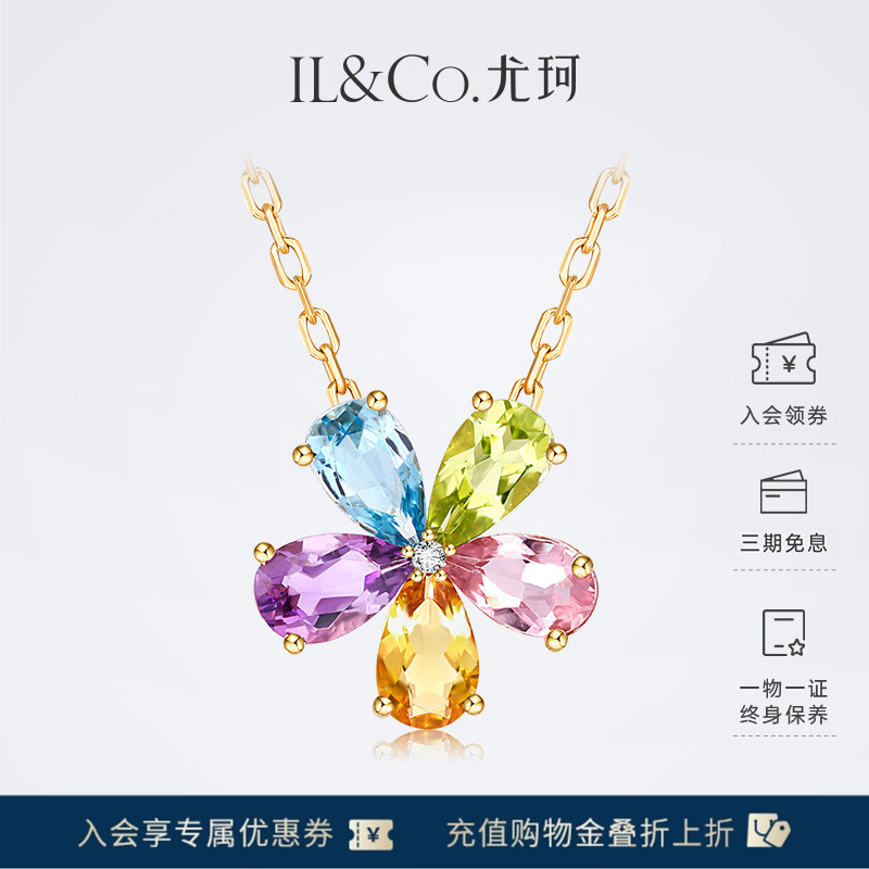 ILCO尤珂「和彩之花」18K金天然寶石五彩多色彩寶碧璽小花花吊墜