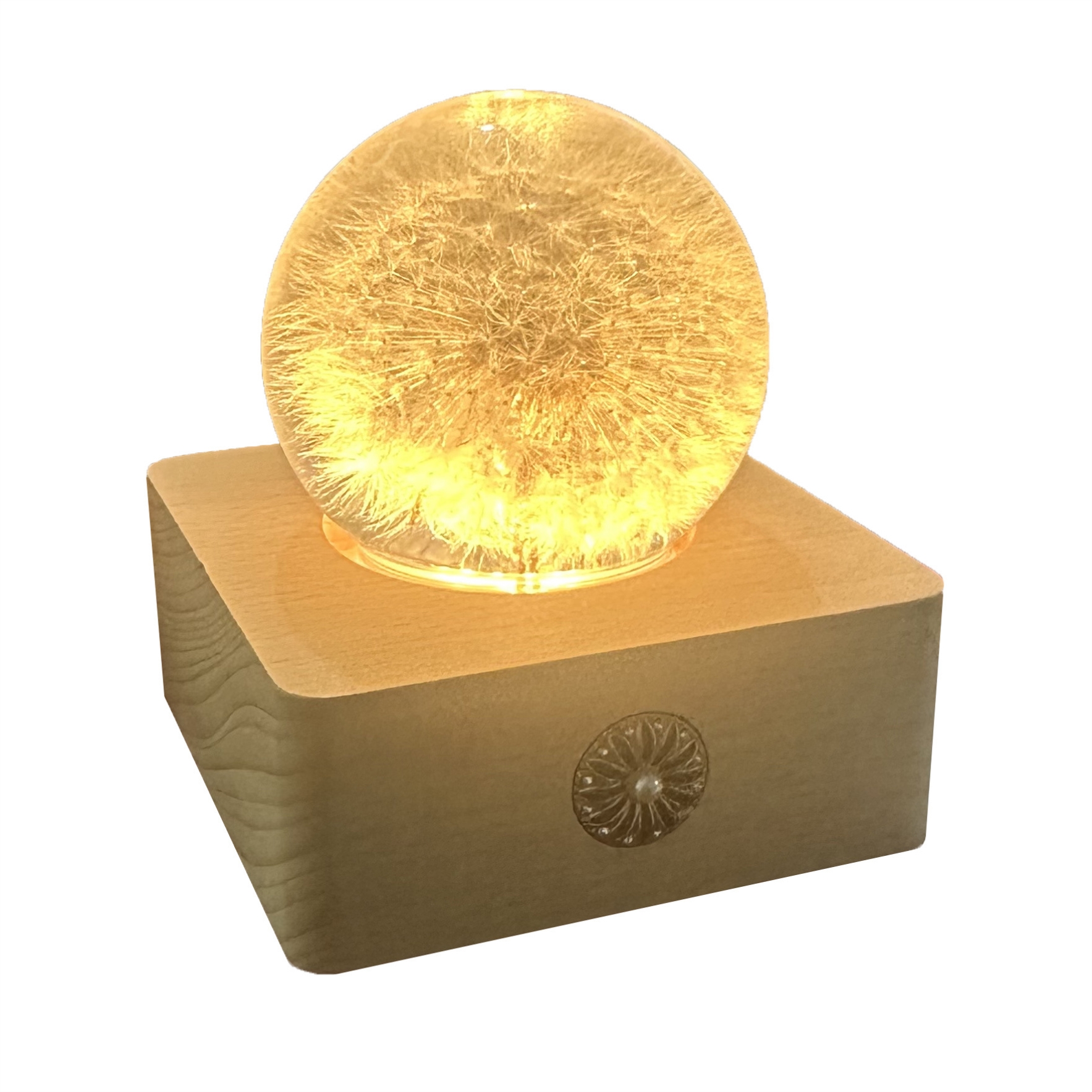 蒲公英標本發光水晶球小夜燈永生花裝飾擺件旋轉八音盒3D創意禮物