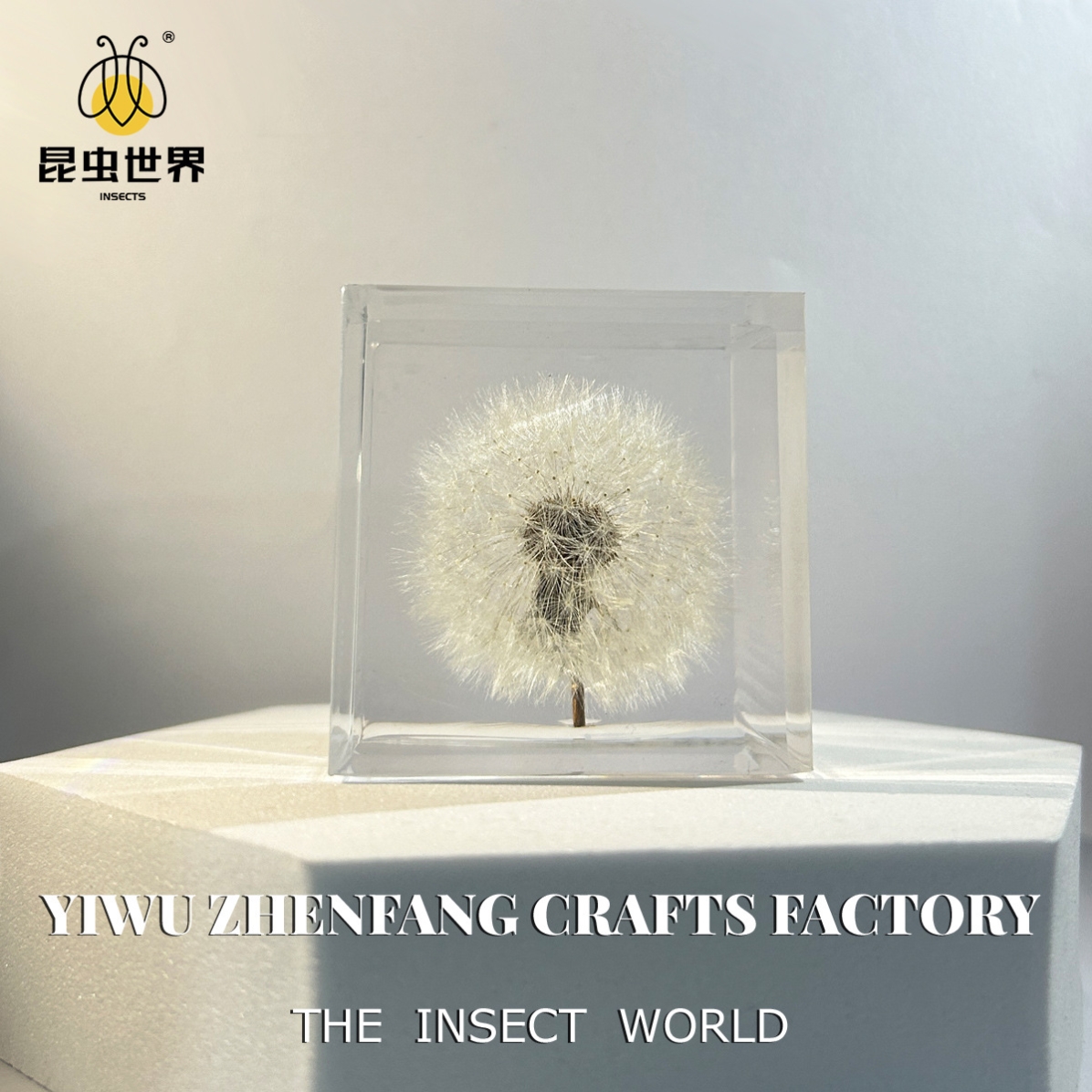 蒲公英標本立方體雛菊植物真花樹脂擺件水晶滴膠成品永生花鎮紙