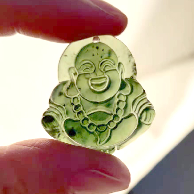 天然藍田墨玉高透彌勒佛吊墜小款吊墜送女友正品藍田玉