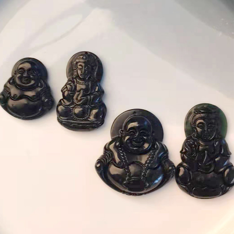 藍田墨玉吊墜小款觀音 彌勒佛 帶掛繩天然藥王石