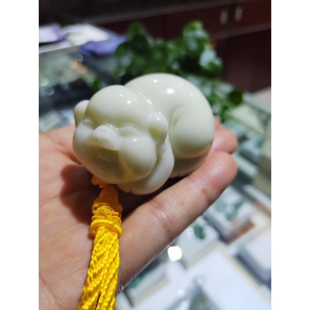 純天然西安藍田白玉狼圖騰牌子把件掛件手工雕刻油潤細膩送禮品盒