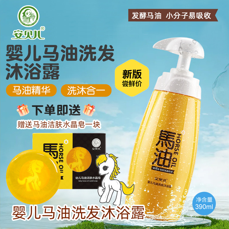 安貝兒嬰兒馬油洗發沐浴露二合一寶寶專用嬰幼兒童寶洗護保濕清潔