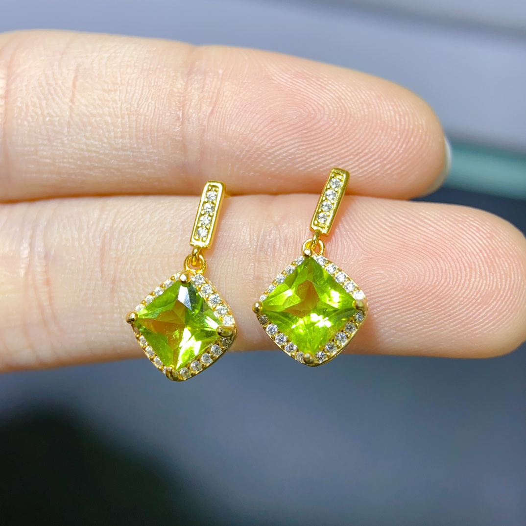 橄欖石耳墜,925銀鑲嵌,主石尺寸6*6mm