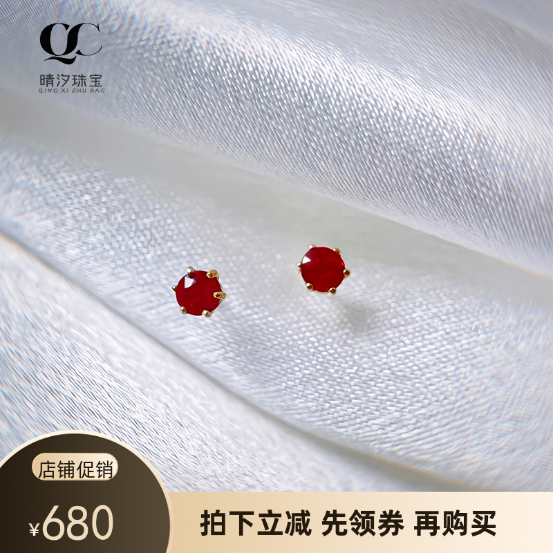 Yngel/蜜安琪正品紅寶石耳釘18k耳墜天然寶石彩寶耳飾玫瑰金定制