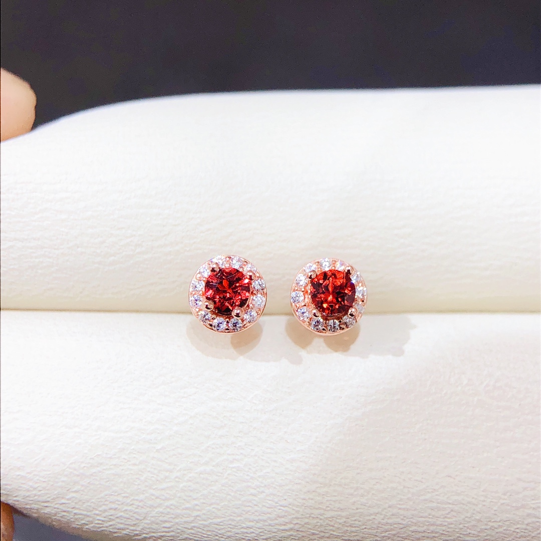 【中國地質大學】【地大珠寶】天然酒紅石榴石耳釘 s925純銀鑲嵌