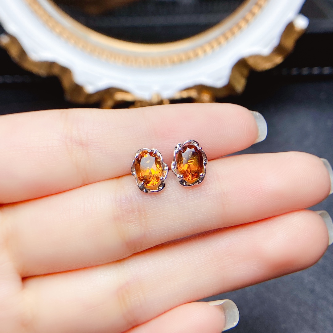 黃水晶耳釘,主石尺寸5*7mm,925銀精工鑲嵌情人節禮物土屬性