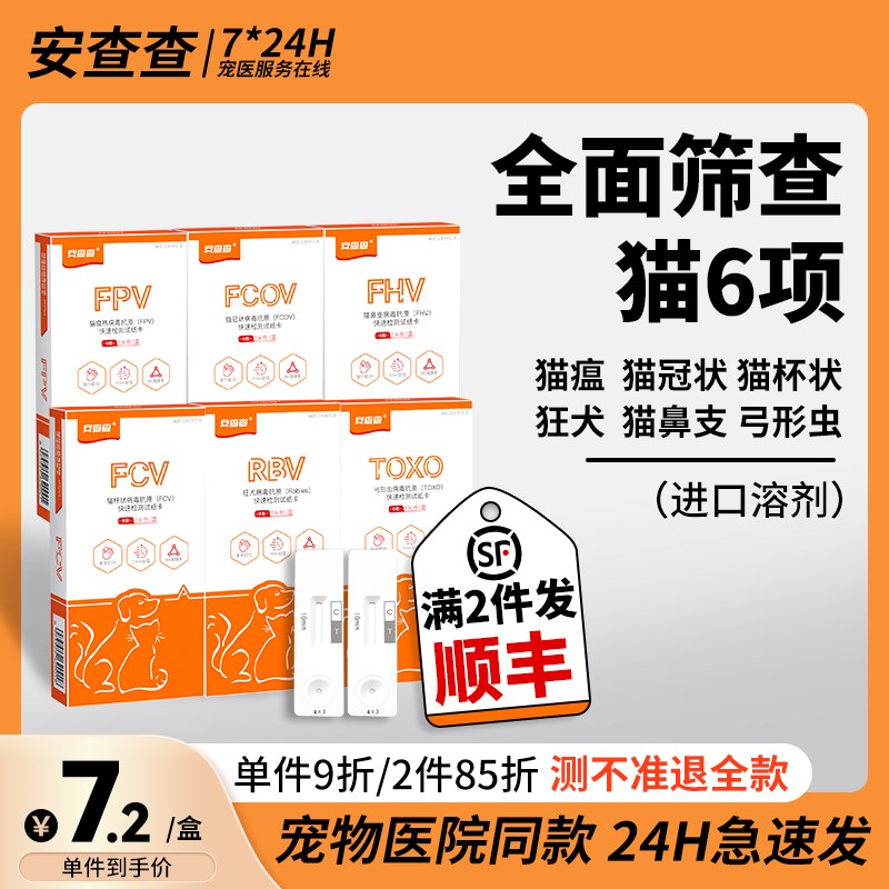 速發【貓6項全檢】貓瘟貓冠狀試紙貓鼻支貓杯狀檢測盒弓形蟲狂犬