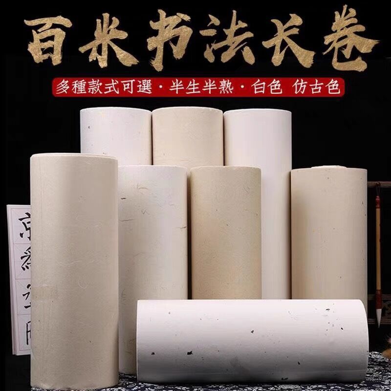 加厚灑金云龍皮紙麻長纖維檀皮百米長卷半生半熟書法國畫創作