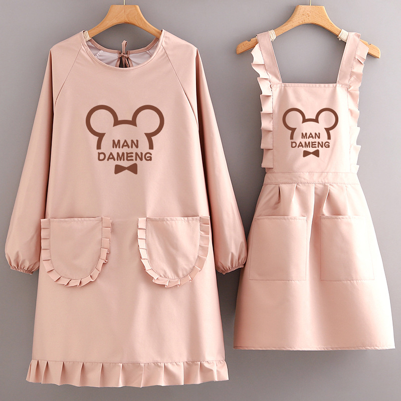 棉布圍裙時尚家用廚房防污透氣純棉長袖罩衣做飯上班工作服圍腰